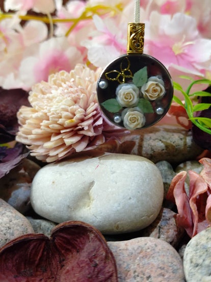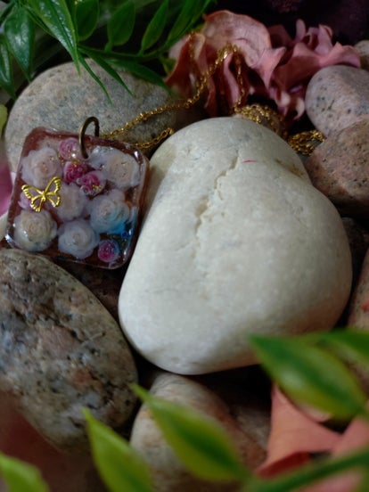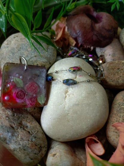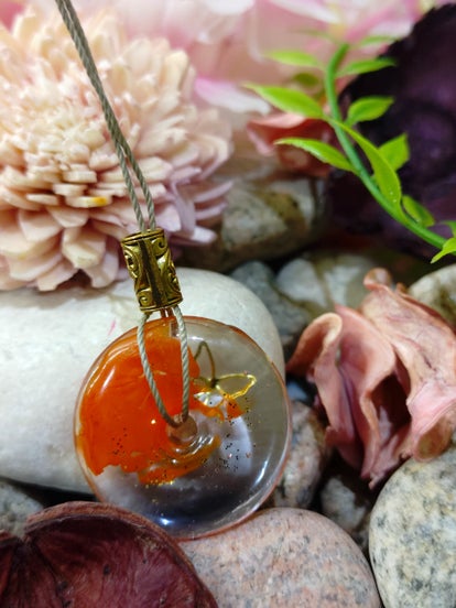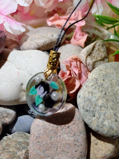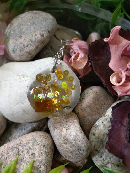 Laissez-vous envoûter par la magie de notre collier "Éclat de Lune". Un bijou délicat en résine époxy, orné de pigments nacrés et de paillettes scintillantes. Portez-le pour illuminer votre décolleté et ajouter une touche de rêve à votre tenue.