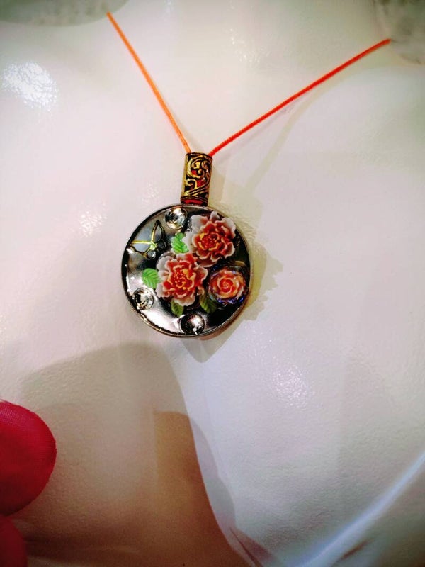 Collier Médaillon roses orange